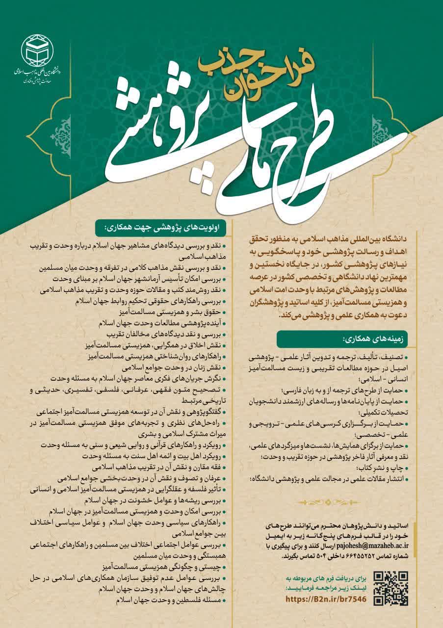 فراخوان جذب طرح های پژوهشی در دانشگاه بین المللی مذاهب اسلامی