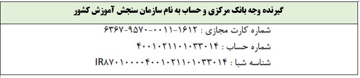 مبلغ 3،600،000 ریال بابت هزینه مصاحبه برای هر کد رشته محل که به حساب زیر پرداخت شود. توجه مهم: وجه پرداخت‌شده ثبت‌نام، در صورت انصراف و یا عدم پذیرش نهایی متقاضی یا اشتباه در پرداخت به هیچ عنوان مسترد نخواهد شد. لذا داوطلبان محترم ضروری است قبل از واریز هزینه دقت لازم را به عمل آورند.
