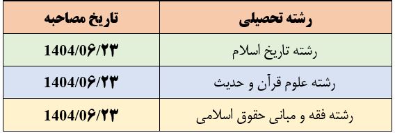 دانشگاه بین المللی مذاهب اسلامی ضمن تبریک به پذیرفته‌شدگان آزمون کتبی اختصاصی طلاب مقطع دکتری سال 1404، شرایط و ضوابط شرکت داوطلبان در مرحله مصاحبه آزمون را به شرح ذیل اعلام می‌نماید: