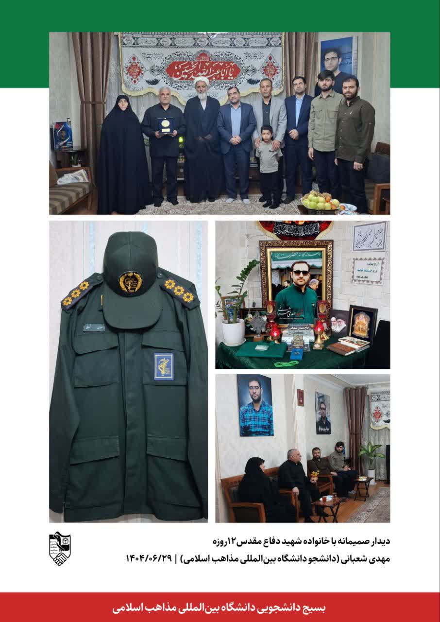 شایان ذکر است شهید مهدی شعبانی ورودی 1400 رشته علوم قرآن و حدیث دانشگاه بین المللی مذاهب اسلامی و حافظ کل قرآن کریم بود که در اثنای تحصیل سنگر دیگری را برگزید و جذب نیروهای مسلح شد و در دفاع مقدس 12 روزه رژیم منهوس صهیونیستی علیه کشور عزیزمان در دفاع از اقتدار وطن به درجه رفیع شهادت نایل گردید.