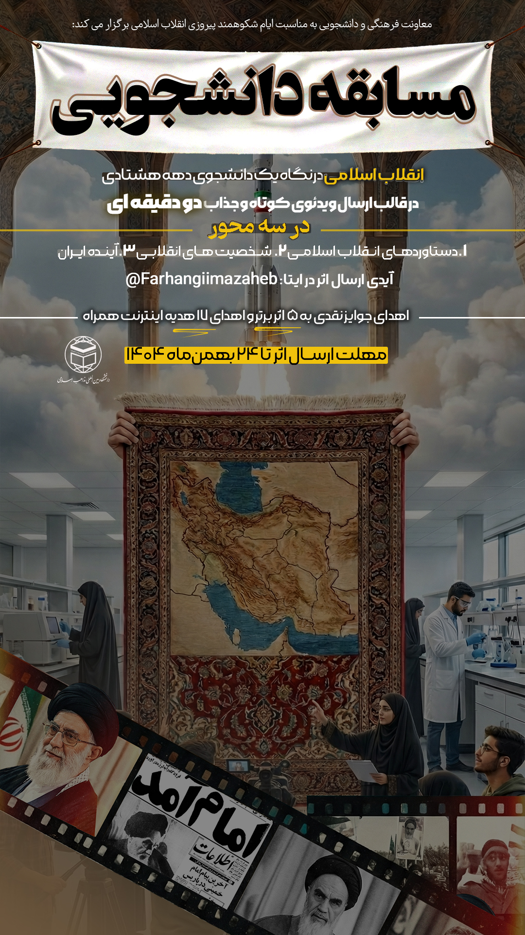 مسابقه دانشجویی «انقلاب اسلامی در نگاه یک دانشجوی دهه هشتادی»/مهلت ارسال تا ۲۴ بهمن ماه ۱۴۰۴
